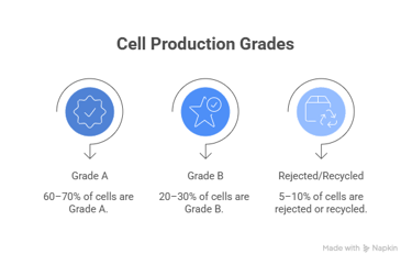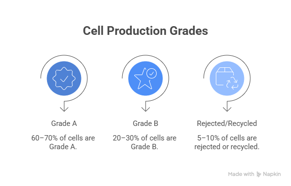 Battery grading directly impacts production yield. Not every manufactured battery cell meets premium specifications.