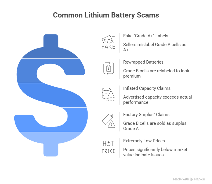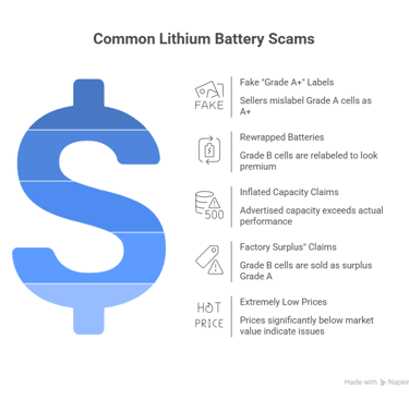 Some sellers purchase Grade B cells and rewrap them with new labels to appear like premium cells.